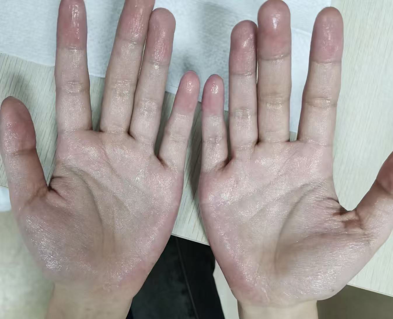 2. 对称性:双手同时出汗,程度基本一致。