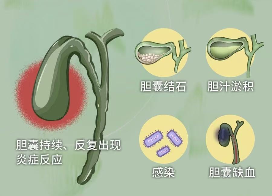 · 细菌感染:细菌经肠道逆行进入胆囊,或通过血液进入。